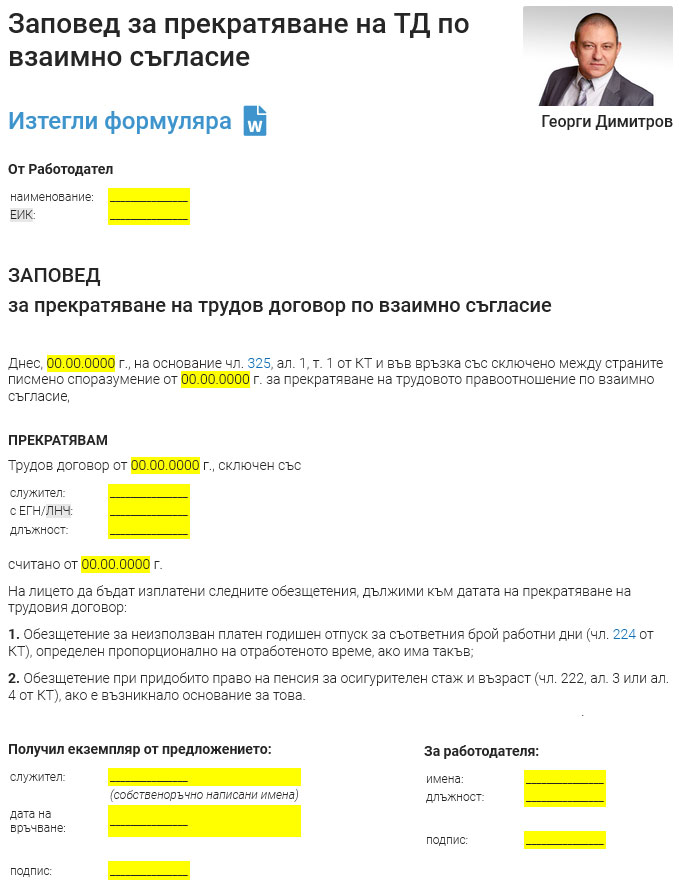 Всеки примерен документ е подготвен така, че да можете да го използвате директно във Вашата работа, след като свалите на компютъра си неговия образец в word формат. За да избегнете много трудности при съставянето или последващи проблеми с различните документи, ние сме добавили подробни статии към всеки един, в които обясняваме спецификите при тяхното съставяне, правната уредба и честите грешки, които се допускат.