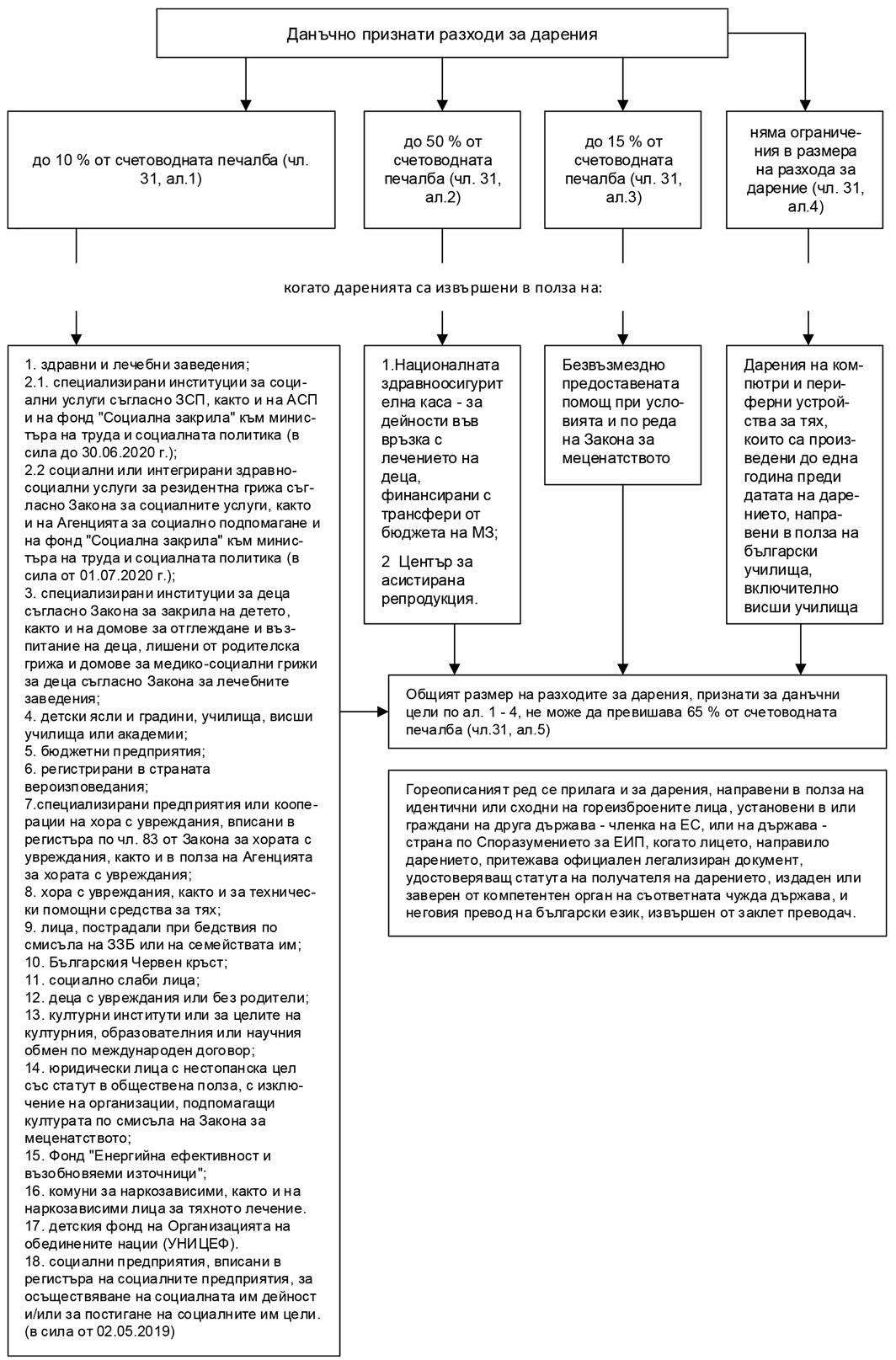 На основание чл.31, ал.1 – ал.4 от ЗКПО част или целият размер на разходите за дарения се признава за данъчни цели, когато даренията са извършени в полза на определен кръг лица.