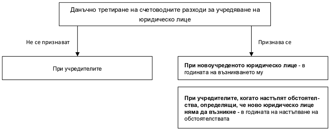 Данъчното третиране на счетоводните разходи за учредяване на юридическо лице е регламентирано с разпоредбата на чл.32 от ЗКПО и се състои в следното: