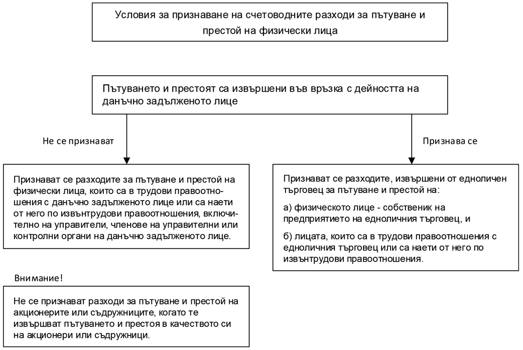 Счетоводните разходи за пътуване и престой на физически лица са данъчно признати когато отговарят на следните условия: