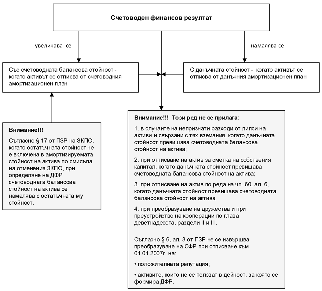 Преобразуване на счетоводния финансов резултат при отписване на данъчен амортизируем актив (чл.66)