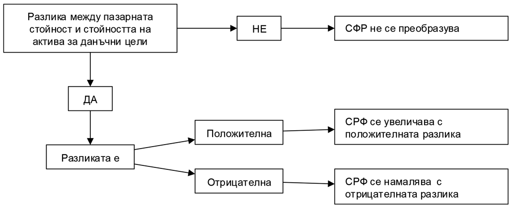 - за данъчни цели СФР не се увеличава със счетоводната балансова стойност на актива (не се прилага чл.66, ал.1) и
