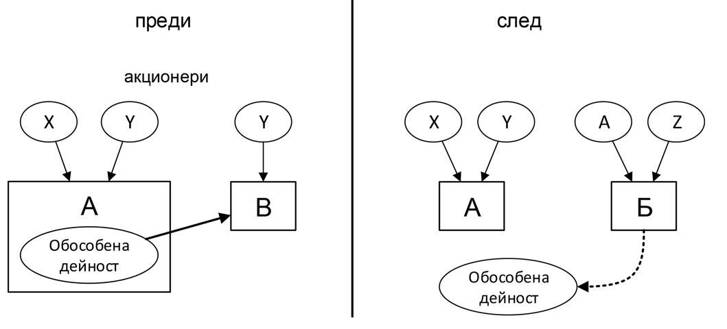 • Прехвърляне на обособена дейност (чл.130 от ЗКПО) ;